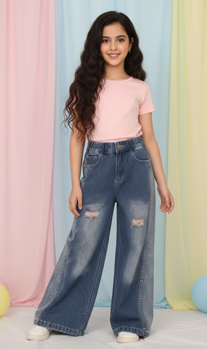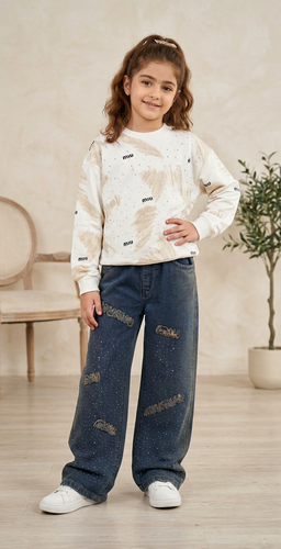 شلوار جین بگ دخترانه نقلی نگین دار دورکش