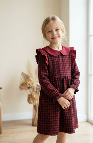 پیراهن دخترانه مخمل کبریتی قرمز و سبز