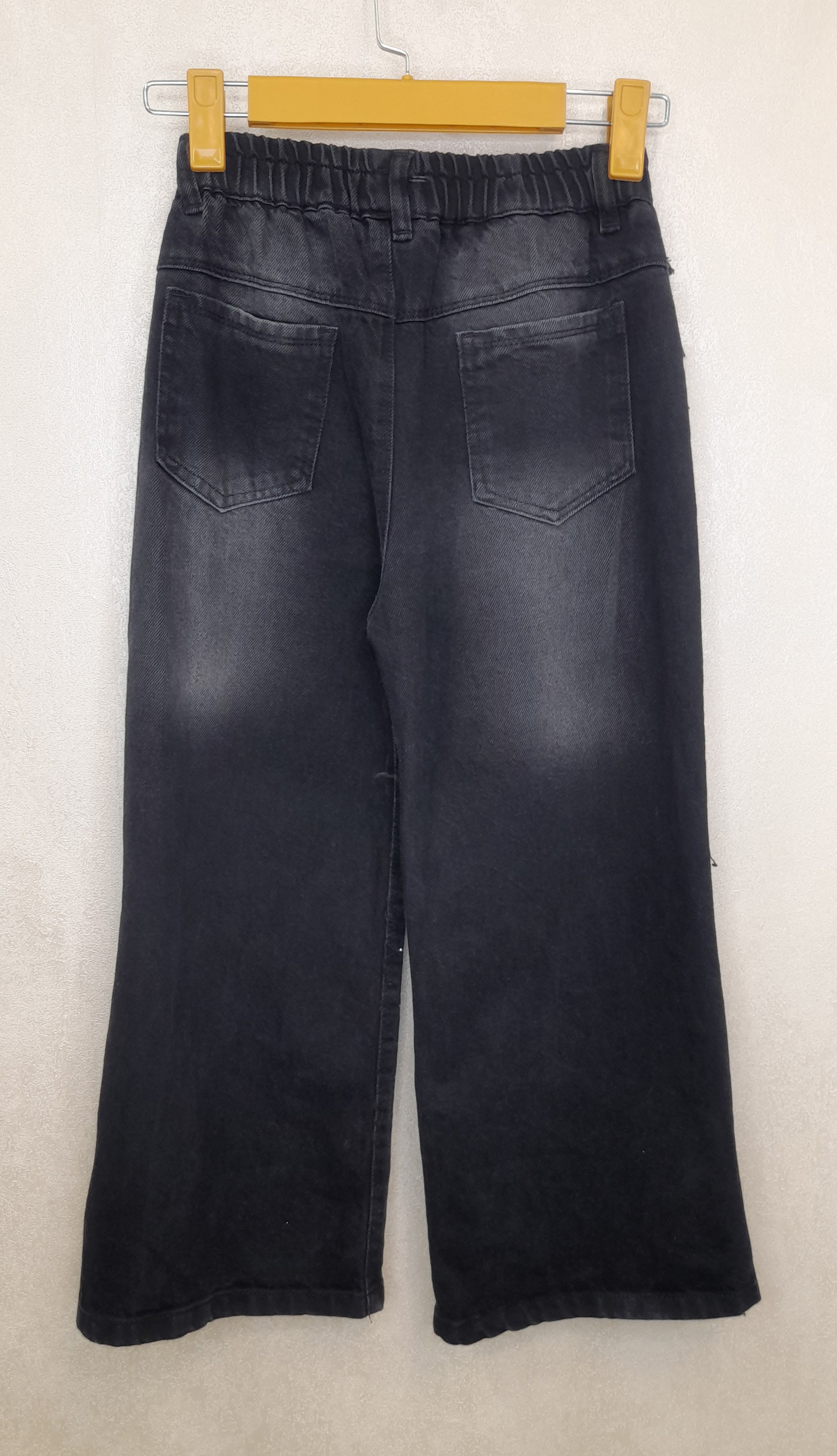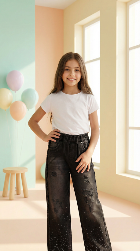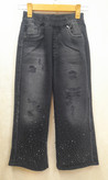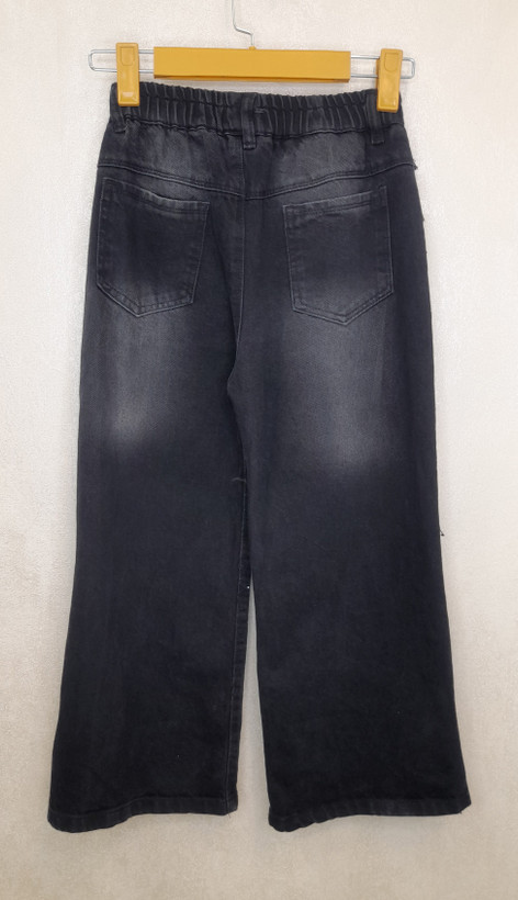 شلوار جین دخترانه بگ زغالی نگین دار بغل ریش دورکش
