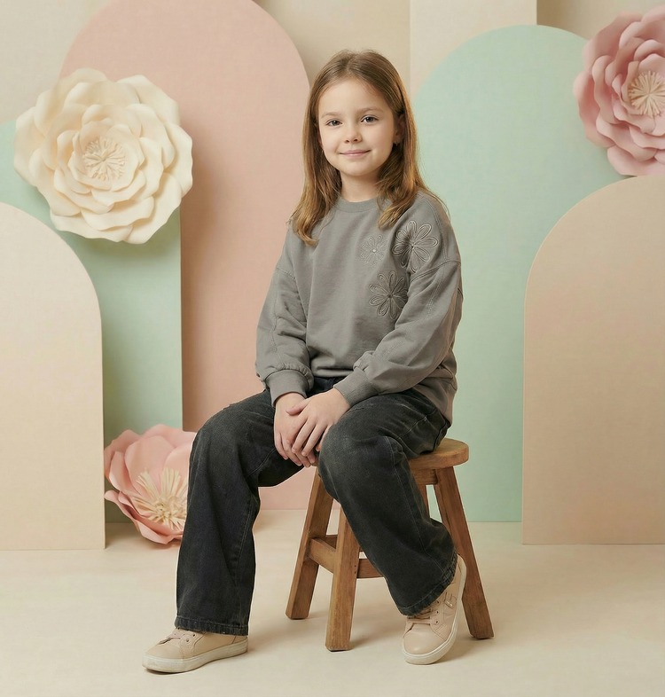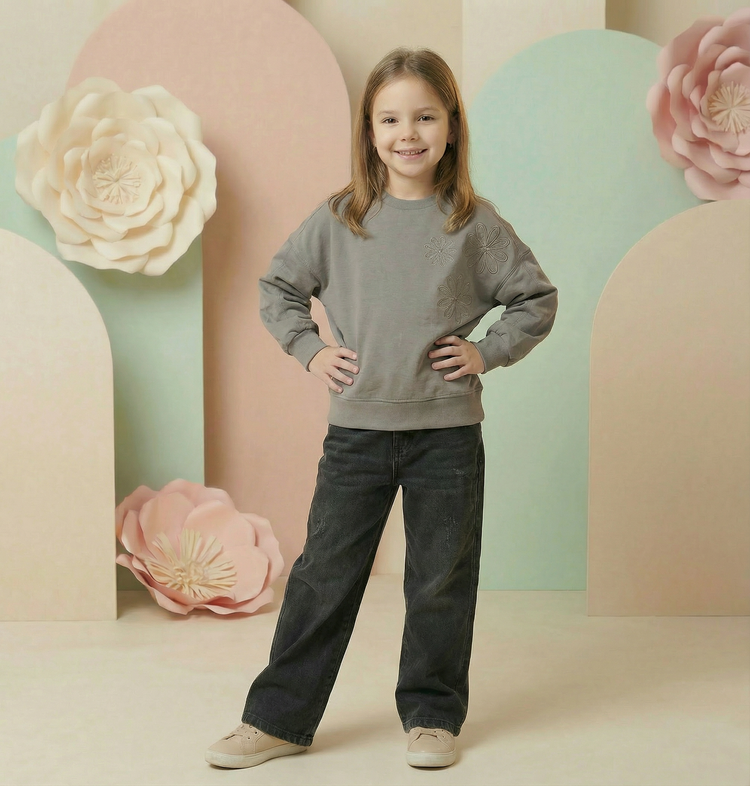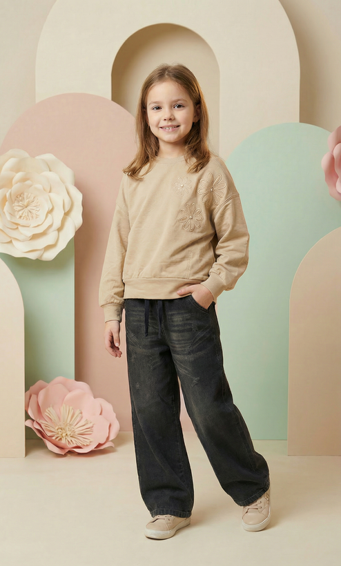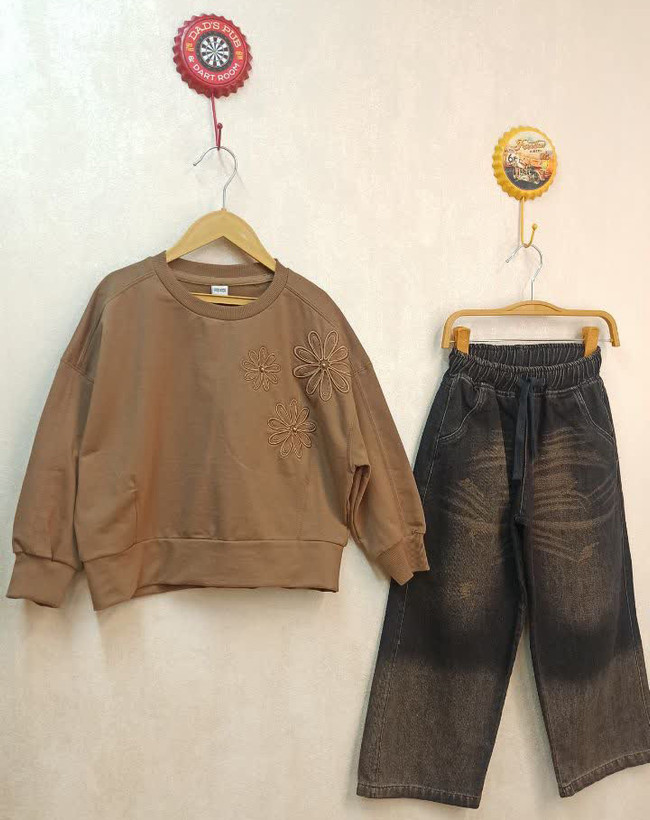 ست بلوز طرح گلدوزی و شلوار جین دخترانه