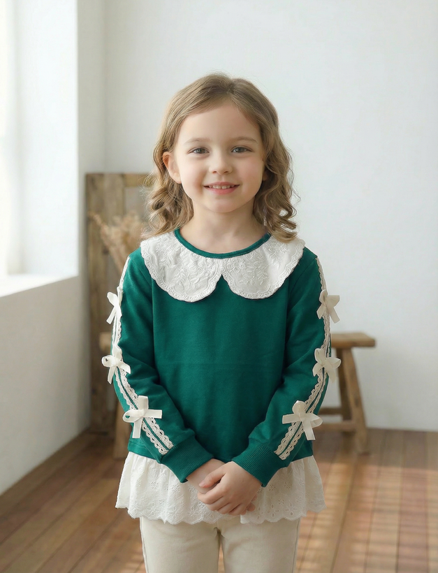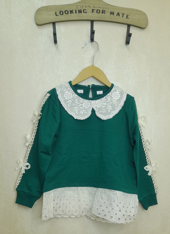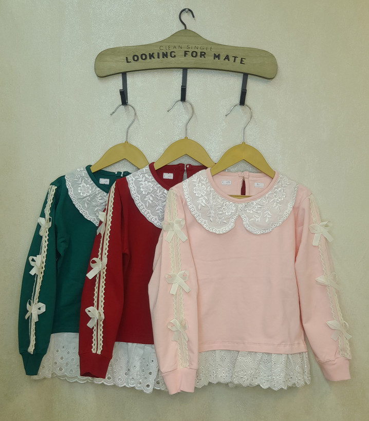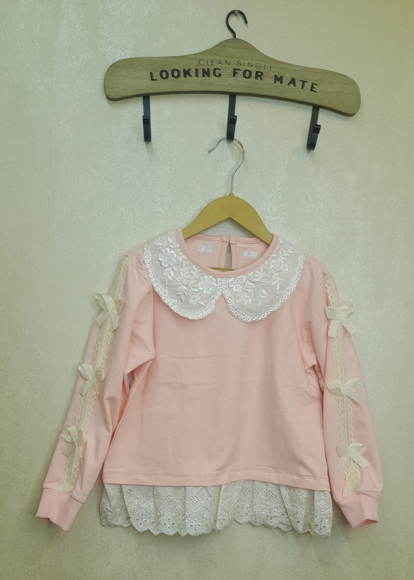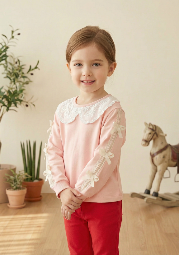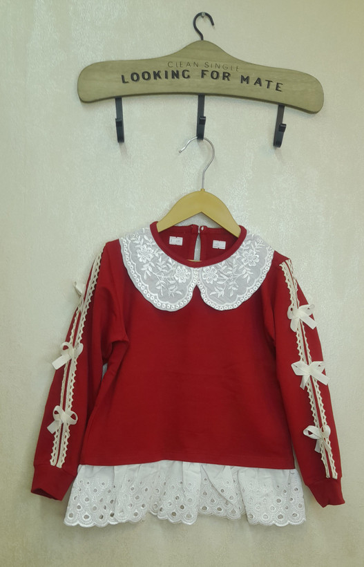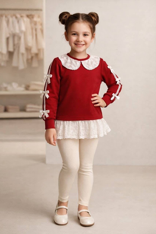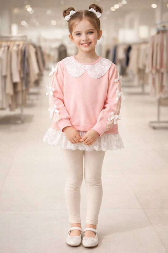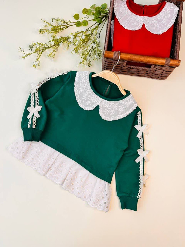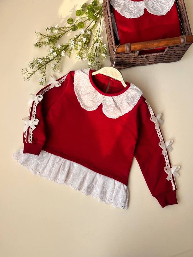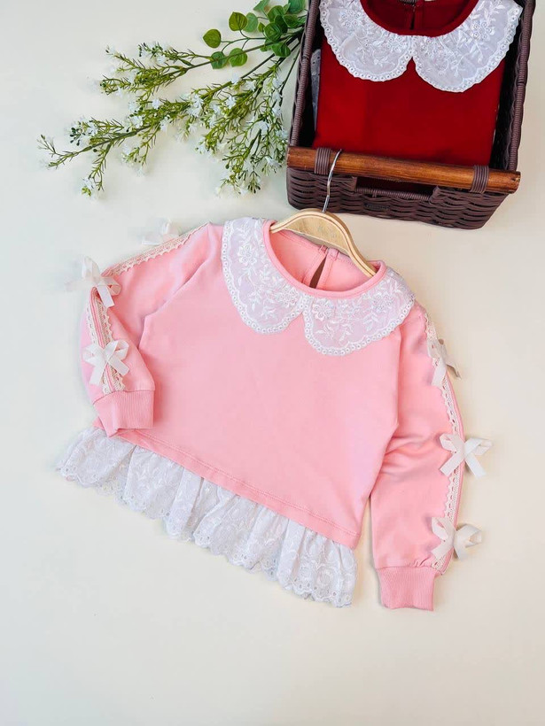 پیراهن دورس یقه ببه دخترانه با تور دانته دور یقه و روی آستین و زیر لباس