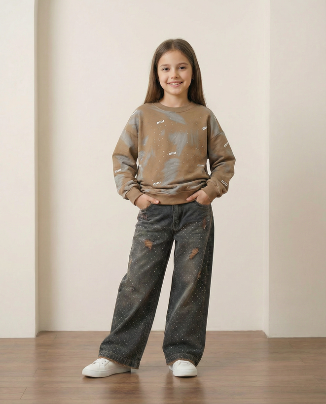بلوز تک نگین دار دخترانه میو ابر و باد