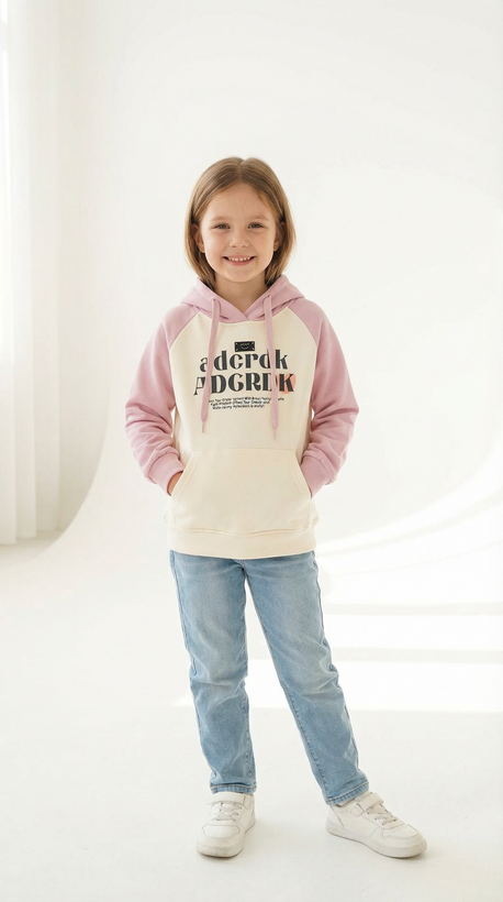 هودی دخترانه کرم و صورتی وارداتی